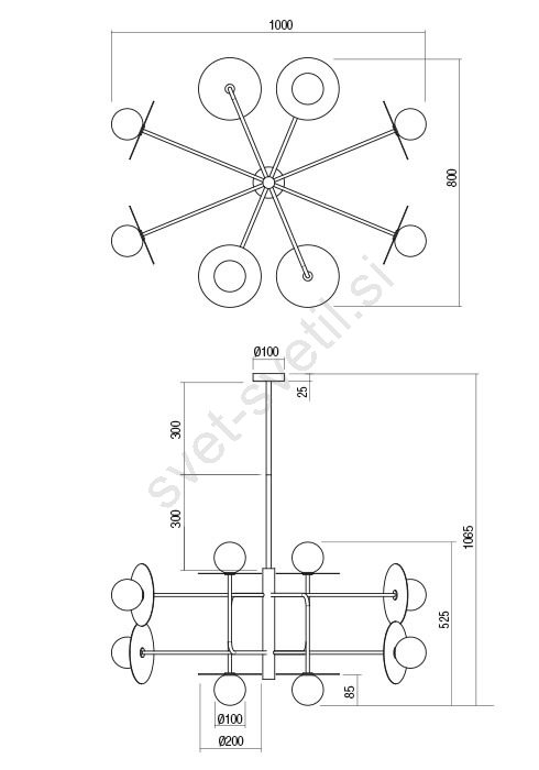 • Redo 01-2753 - Stropni lestenec PLATO na drogu 8xG9/10W/230V črn