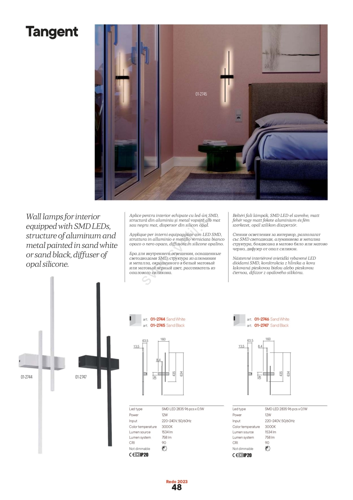 • Redo 01-2744 - LED stenska svetilka TANGENT LED/13W/230V 3000K 63,4 cm CRI 90 bela