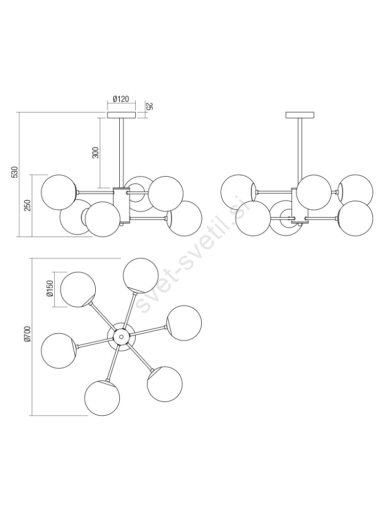 Redo 01-2943 - Lestenec na drogu MUNDI 6xE14/28W/230V bakrena/dimna