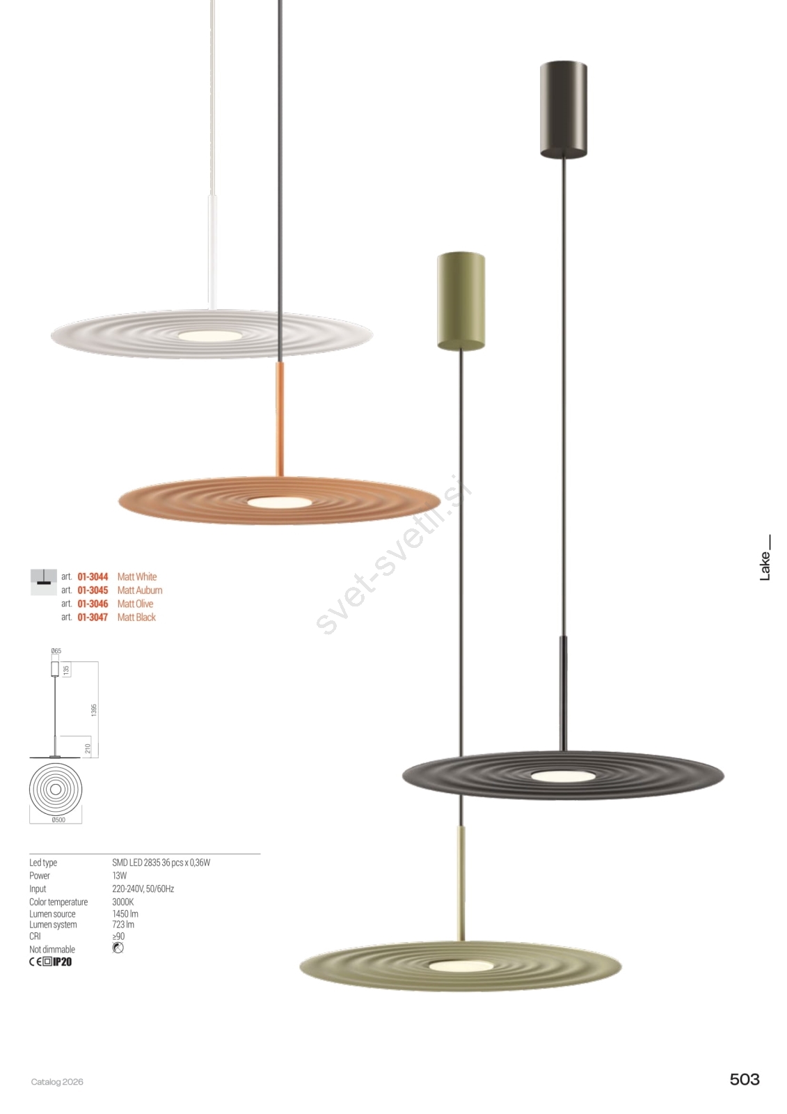 • Redo 01-3044 - LED lestenec na kablu LAKE LED/13W/230V CRI 90, premer 50 cm, bel