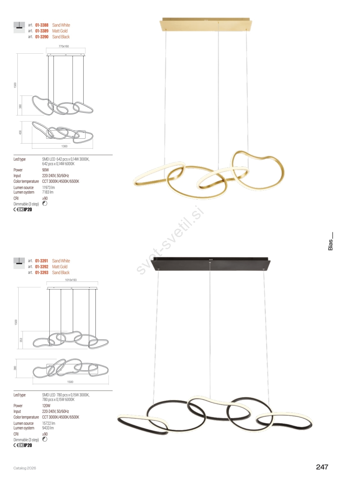 • Redo 01-3389 - LED zatemljiv viseči lestenec na kablu BIAS LED/90W/230V 3000/4500/6500K CRI 90 v zlatem odtenku