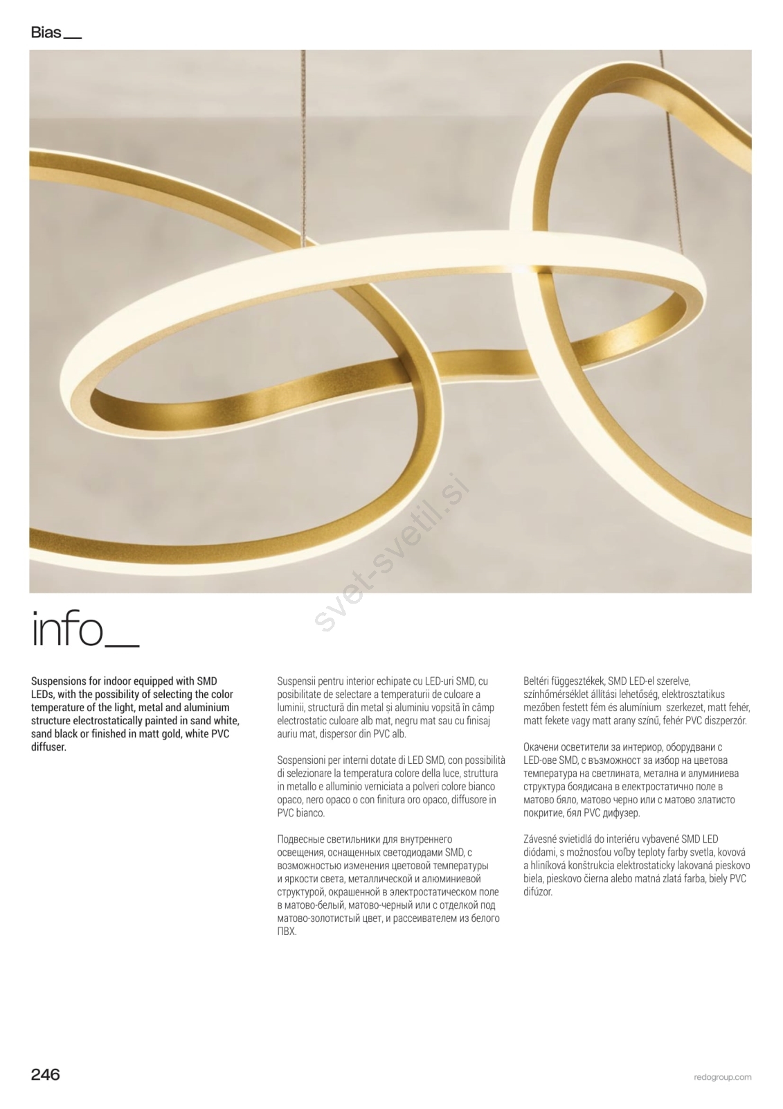 • Redo 01-3392 - LED lestenec z možnostjo zatemnitve na jeklenem kablu BIAS LED/120W/230V 3000/4500/6500K CRI 90 v zlatem odtenku