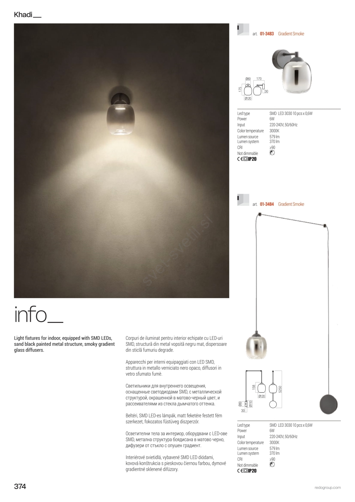 Redo 01-3489 - LED zatemljiv lestenec na vrvici KHADI 7xLED/5W/230V CRI 90 premer 52 cm črna/dimno steklo
