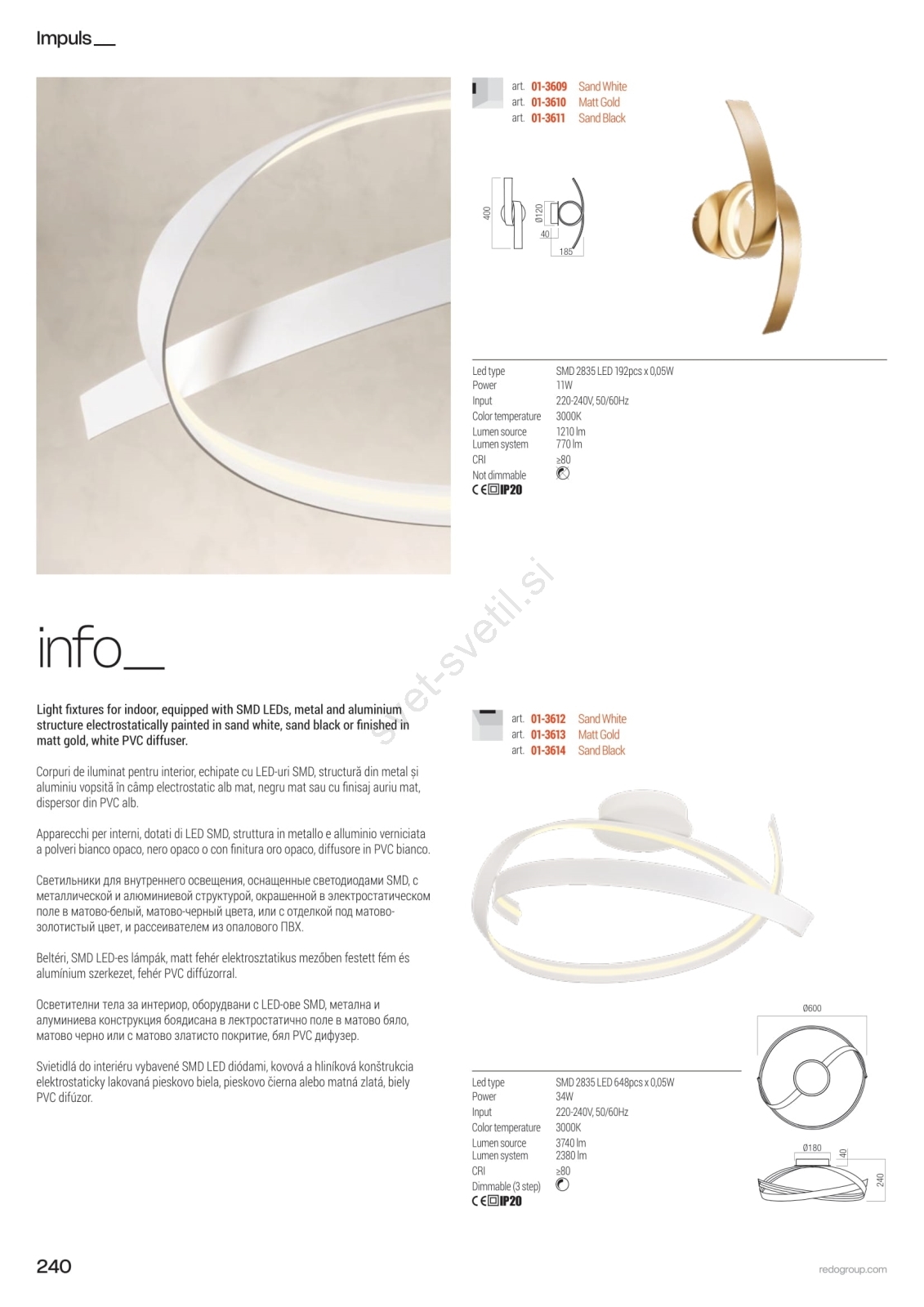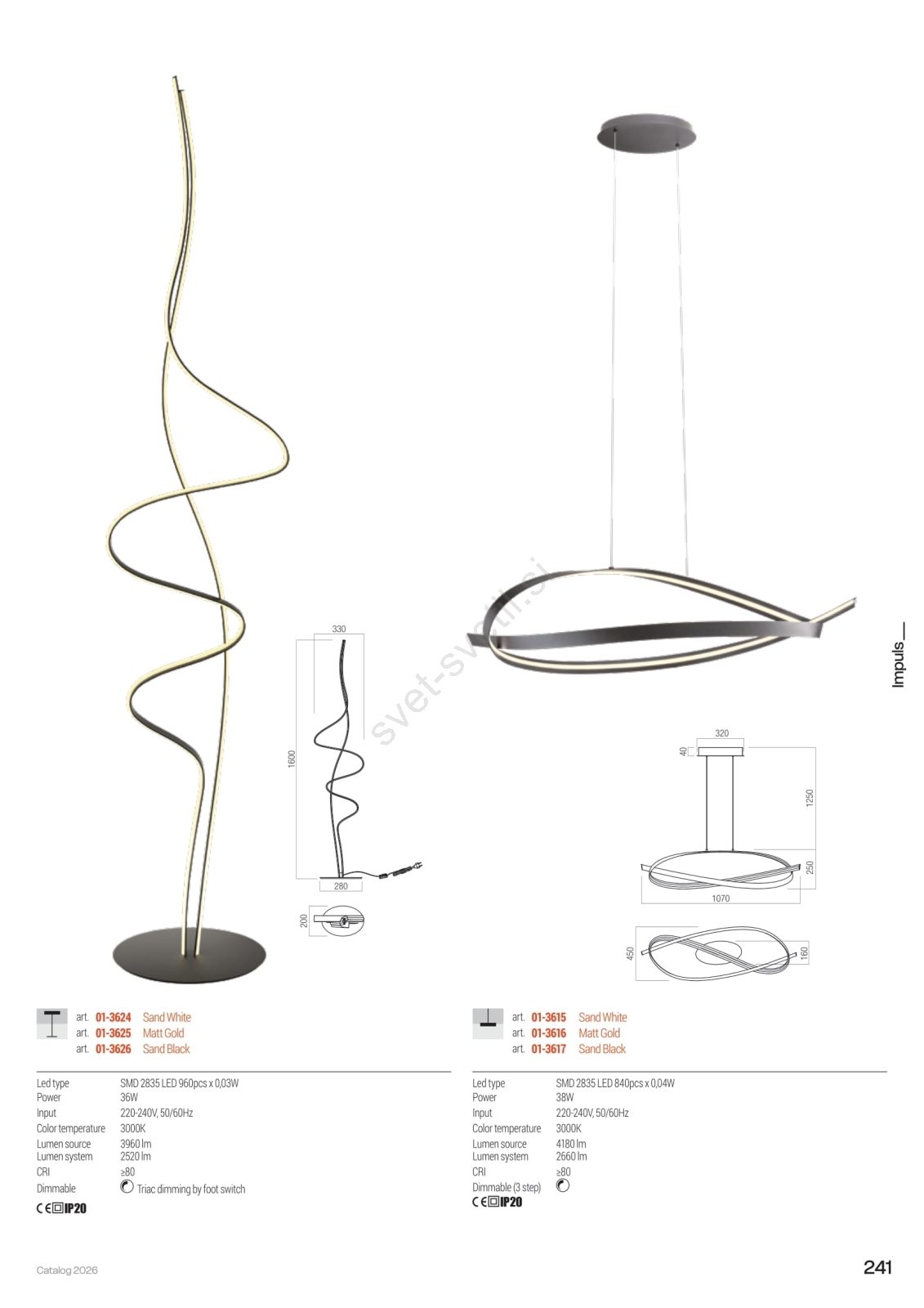 • Redo 01-3616 - LED zatemljiv lestenec na kablu IMPULS LED/38W/230V, zlate barve