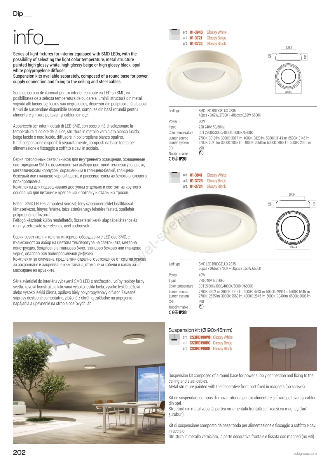 • Redo 01-3941 - LED stropno svetilo DIP LED/40W/230V 2700/3000/4000/5000/6500K CRI 90, premer 62,4 cm, belo
