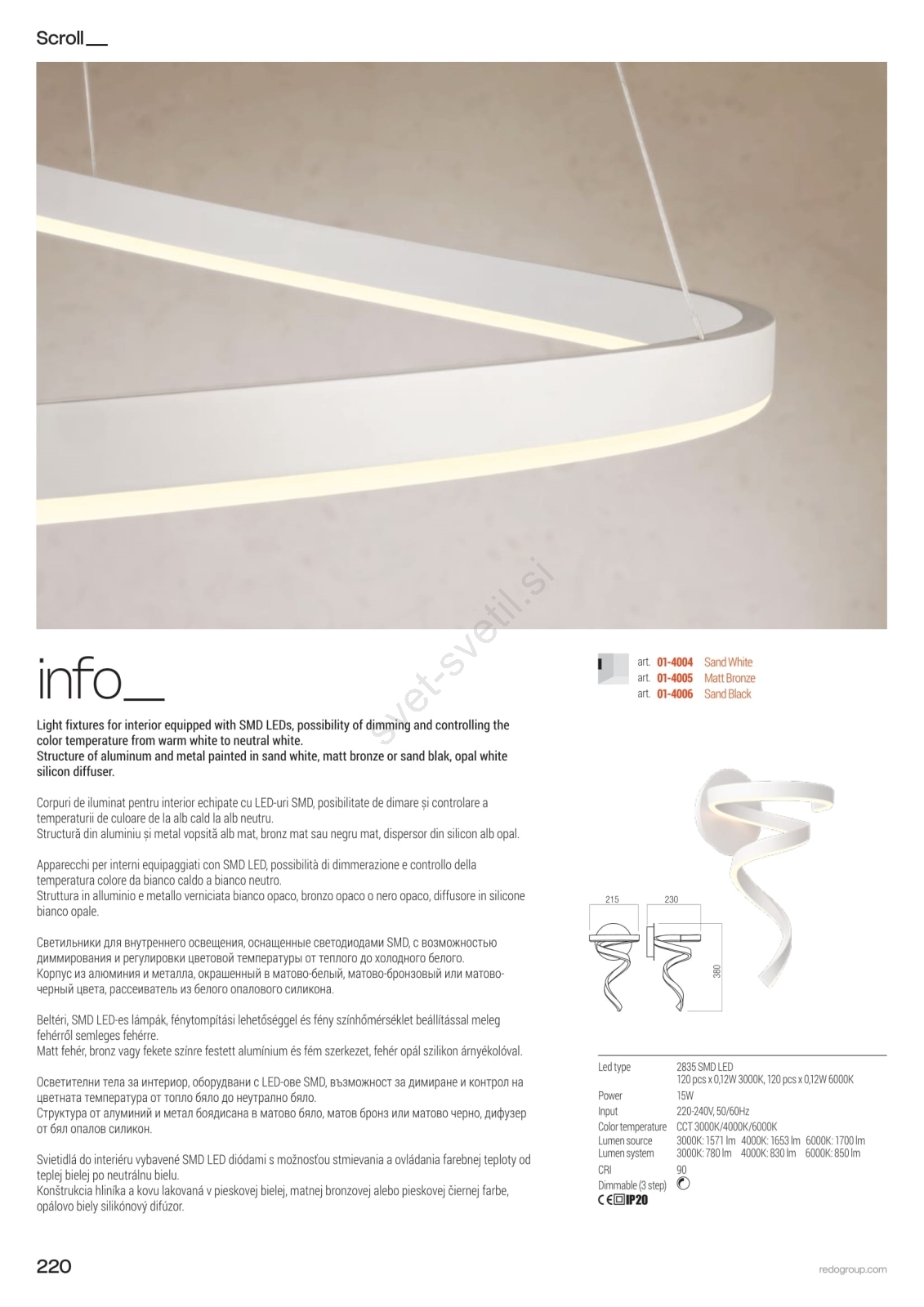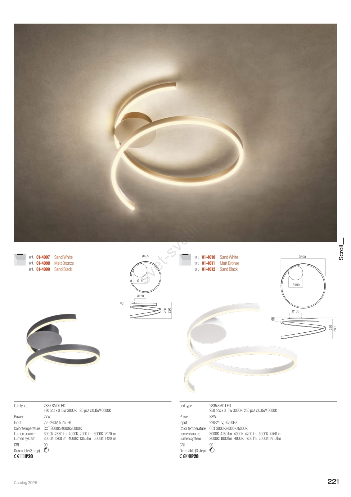 • Redo 01-4010 - SCROLL zatemnjevalna LED stropna svetilka, 38 W/230 V, 3000K/4000K/6000K, CRI 90, Ø 60 cm, bela