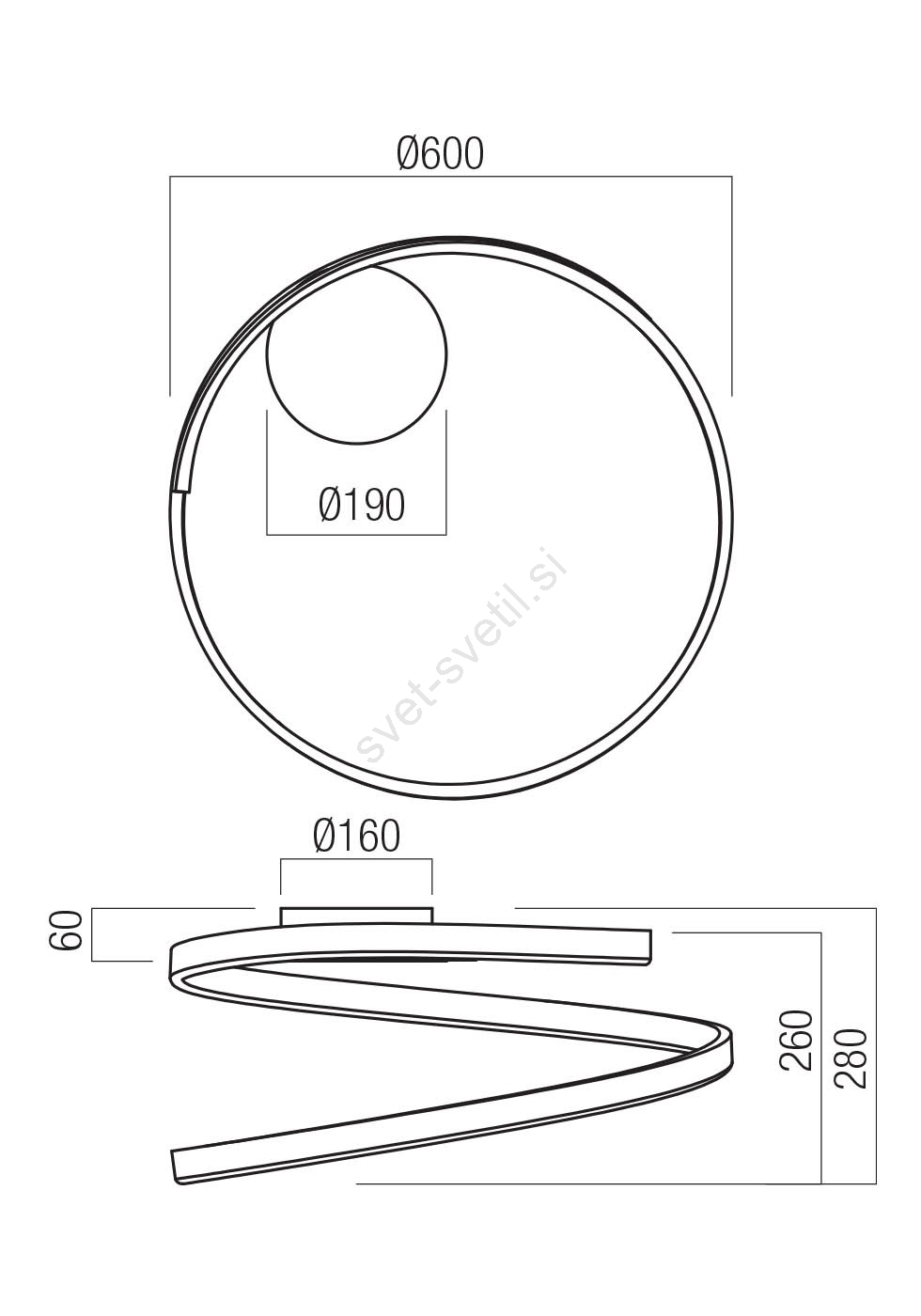 • Redo 01-4012 - Zatemnjivo stropno svetilo SCROLL LED/38W/230V 3000K/4000K/6000K CRI 90, premer 60 cm, črne barve