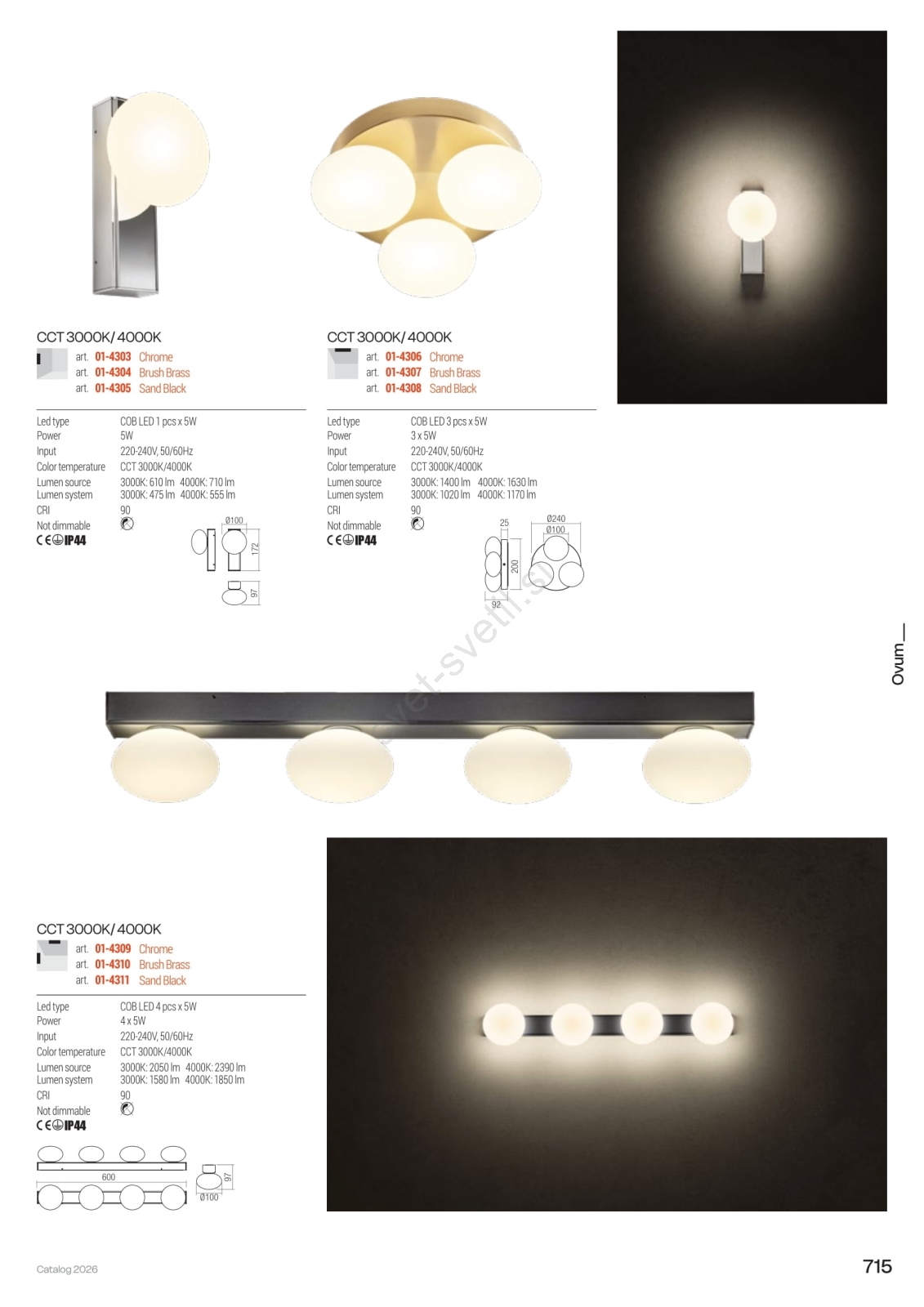 • Redo 01-4308 - LED stropna kopalniška svetilka OVUM 3xLED/5W/230V 3000/4000K CRI 90 premer 24 cm IP44 bela/črna