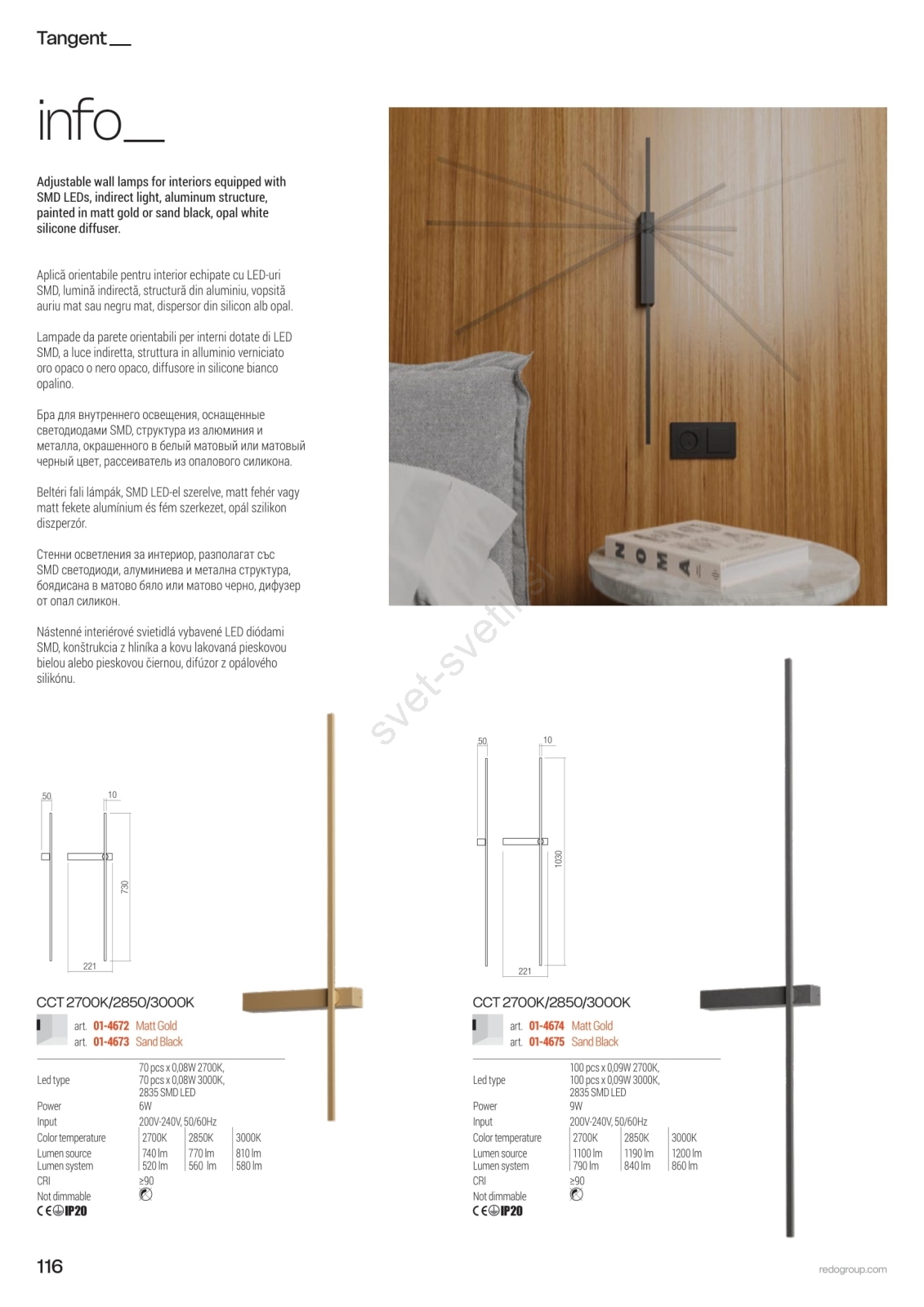 • Redo 01-4672 - LED stensko svetilo TANGENT LED/6W/230V 2700/2850/3000K 73 cm CRI 90 zlato