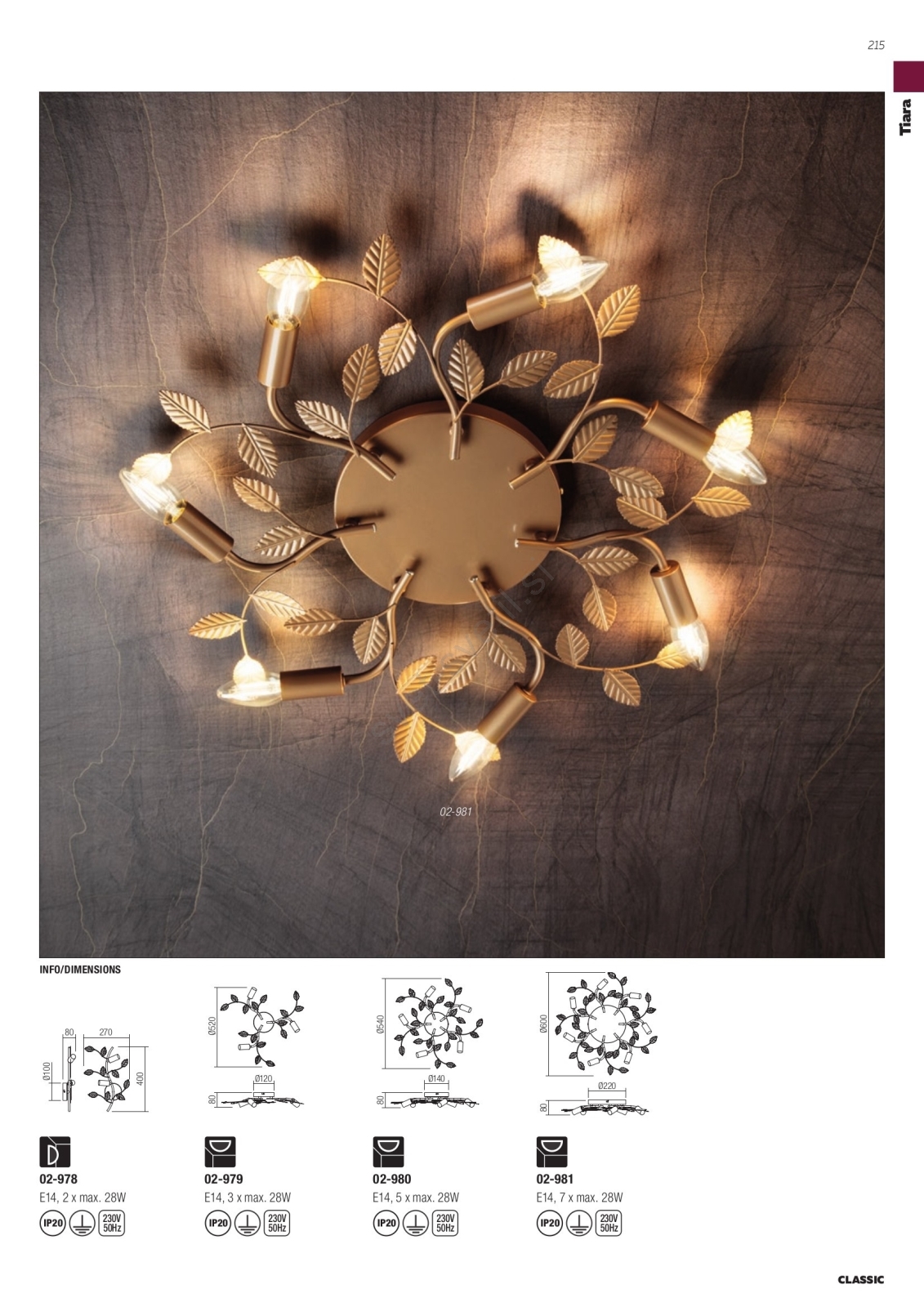 Redo 02-981 - Nadgradni lestenec TIARA 7xE14/28W/230V je značilen lep in funkcionalen dizajn. Za svetilko je primerna žarnica z vznožkom E14. Tukaj lahko kupite ostale žarnice po ugodnih cenah.