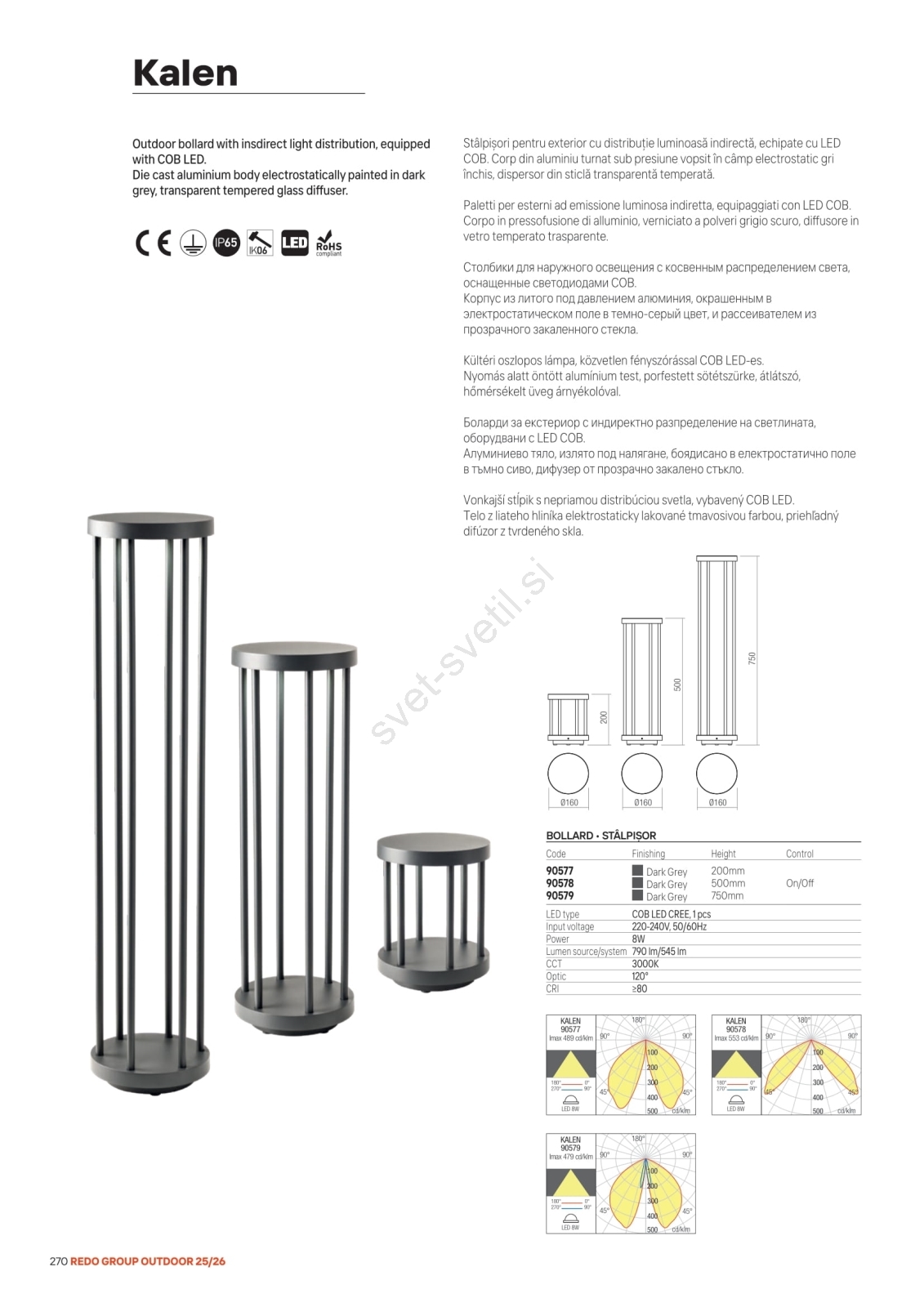 Redo 90579 - LED zunanja svetilka KALEN LED/8W/230V 3000K 75 cm IP65 antracitna