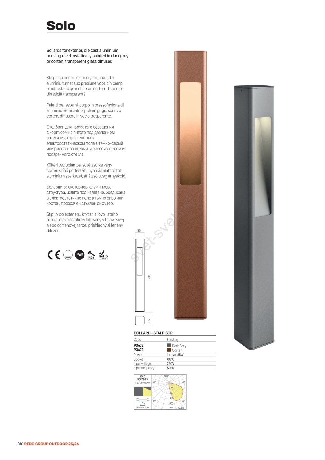 Redo 90672 - Zunanja svetilka SOLO 1xGU10/35W/230V 70 cm IP65 antracit je značilen lep in funkcionalen dizajn. Za svetilko je primerna žarnica z vznožkom GU10. Tukaj lahko kupite ostale žarnice po ugodnih cenah.