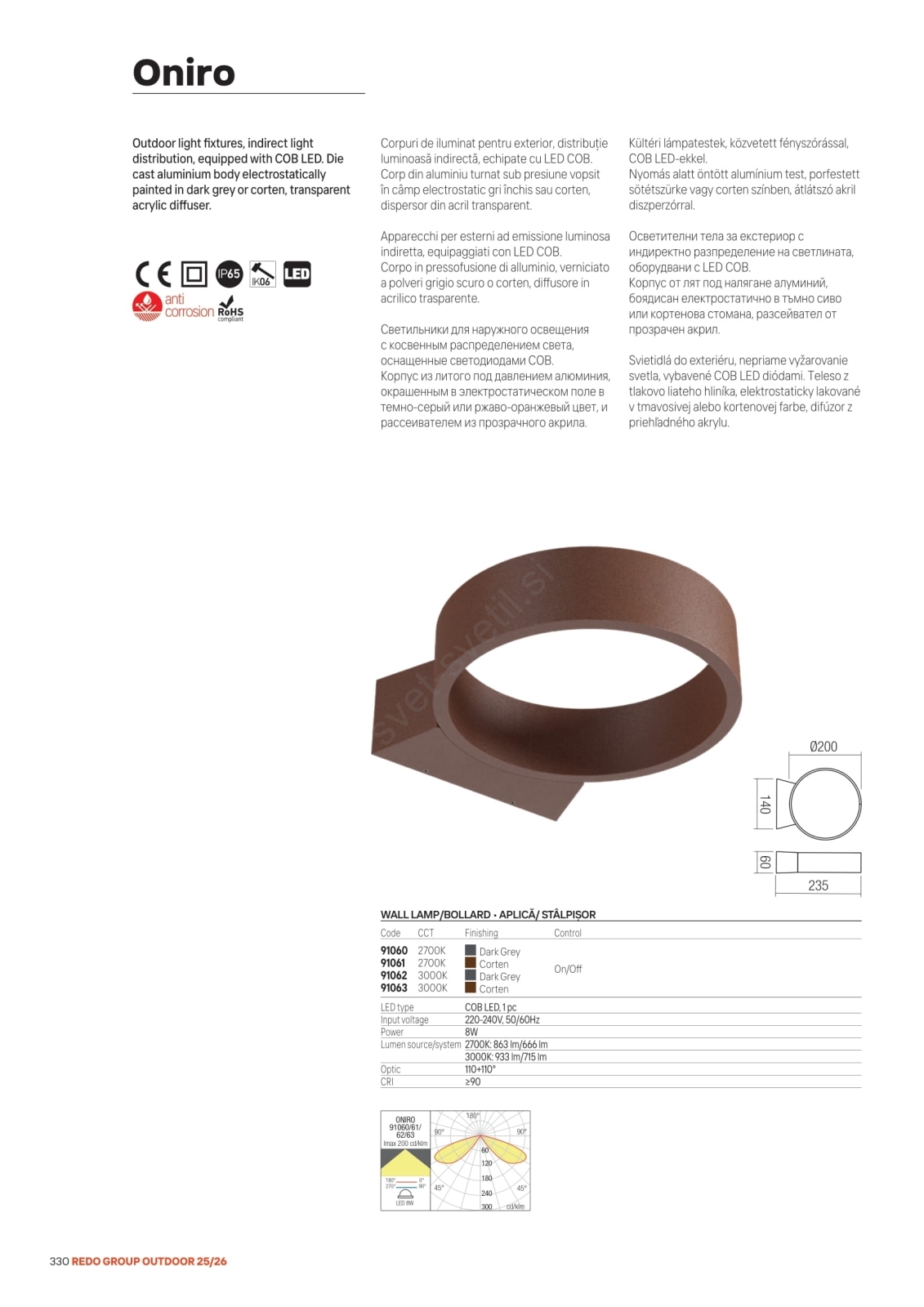 Redo 91062 - LED zunanja stenska svetilka ONIRO LED/8W/230V 3000K CRI 90 IP65 antracit