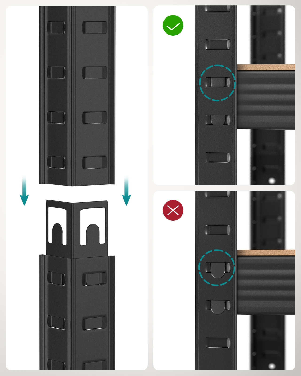 • V paketu je komplet proti prevrnitvi, ki vam bo pomagal pritrditi polico na steno, da bo regal stabilnejši in varnejši.