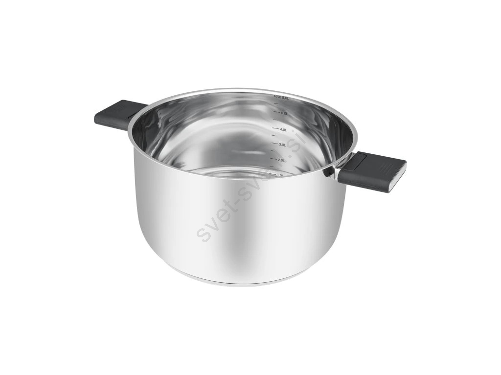 • Pokrov ima inovativen ročaj z dvema položajema za varno dvigovanje in prihranek prostora.