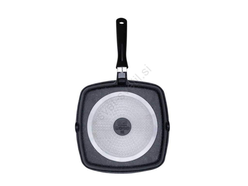 • Dno je dodatno ojačano s protideformacijskim diskom, ki zagotavlja, da ponev ohrani svojo ravno obliko in optimalno toplotno prevodnost tudi pri pogosti uporabi pri visokih temperaturah.