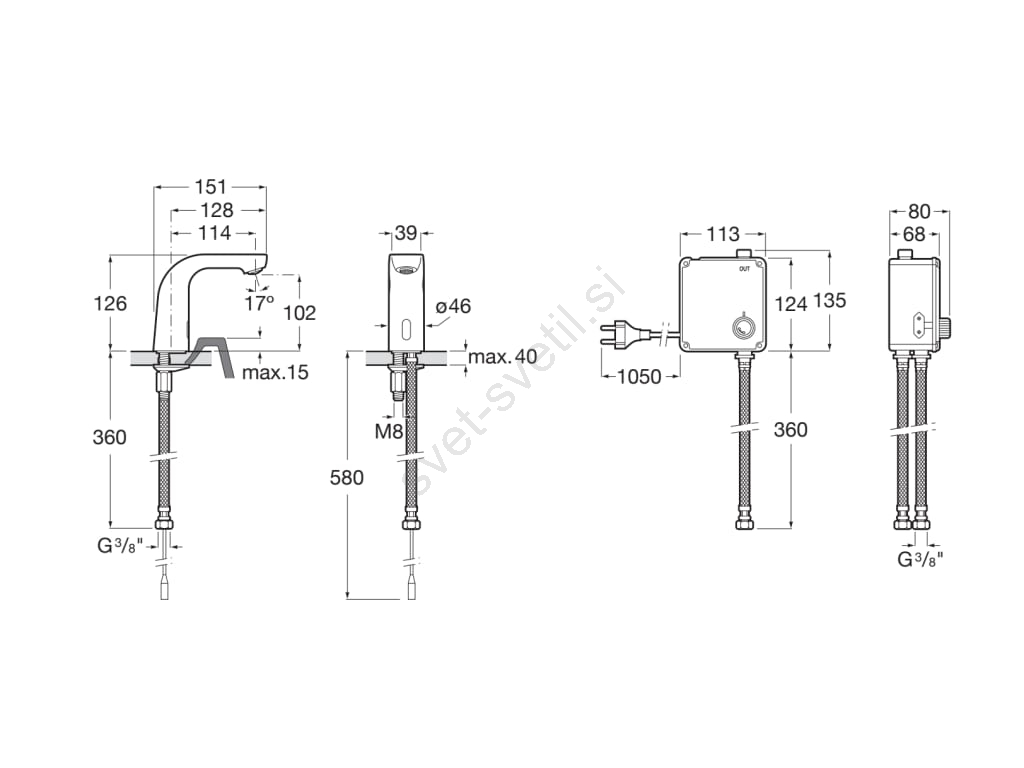 • Brezstična umivalniška pipa, namenjena enemu dovodu vode (le en priključek).