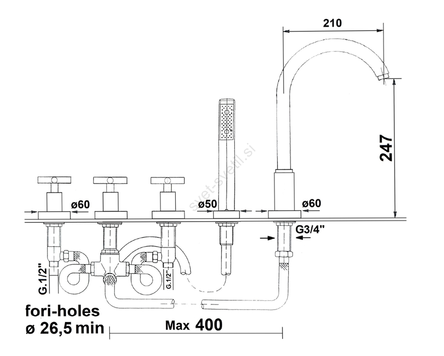• Privlačen in svež videz armatur z ročaji v obliki križa je izviren dodatek za kopalnico.