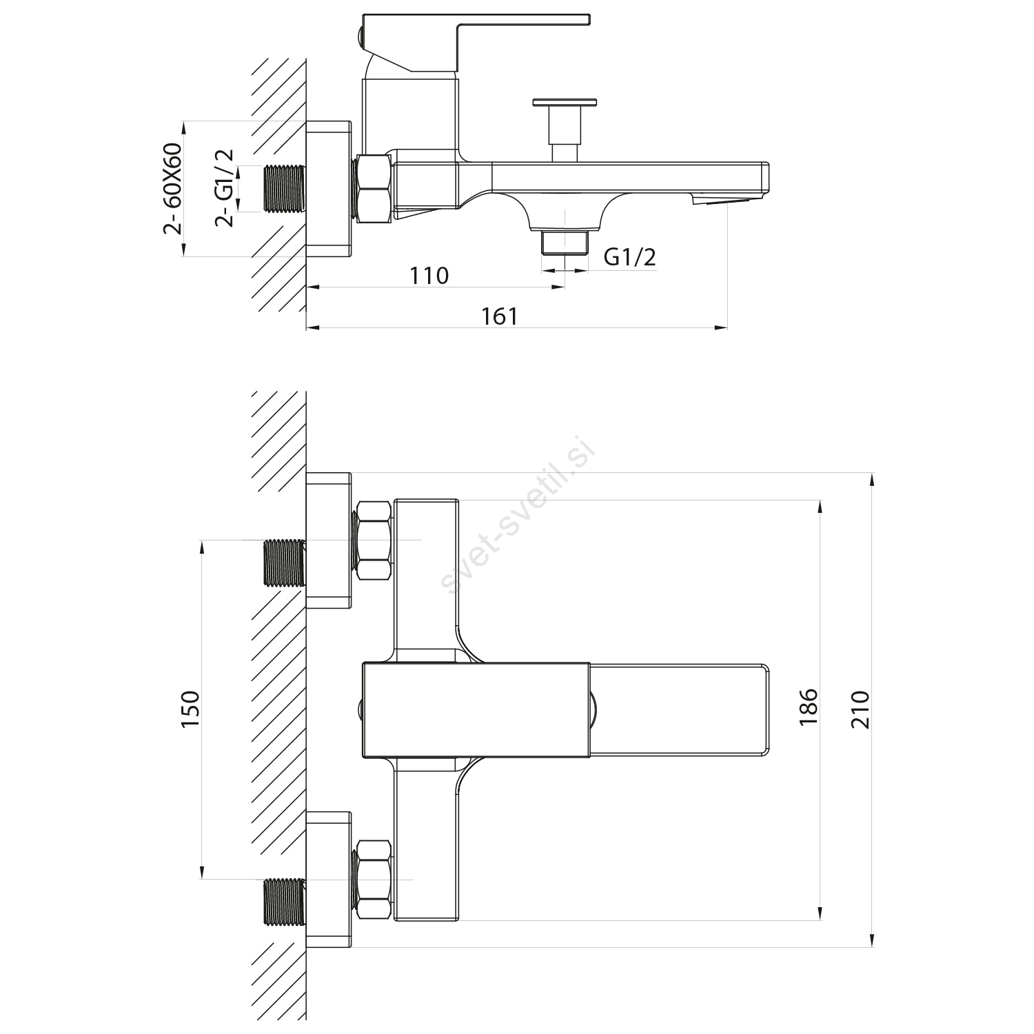 • Montaža je stenska, upravljanje pa poteka z ročico.
