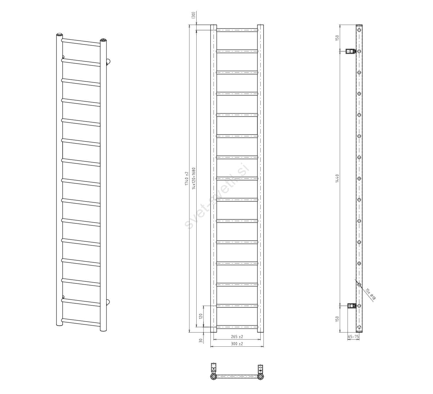 Sapho - Kopalniški radiator DINA 335W 30x174 cm mat črna