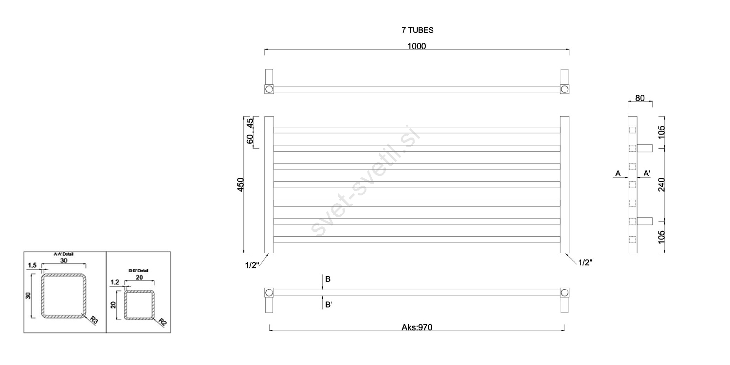Sapho - Kopalniški radiator METRO 295W/230V 100x45 cm sijajni krom