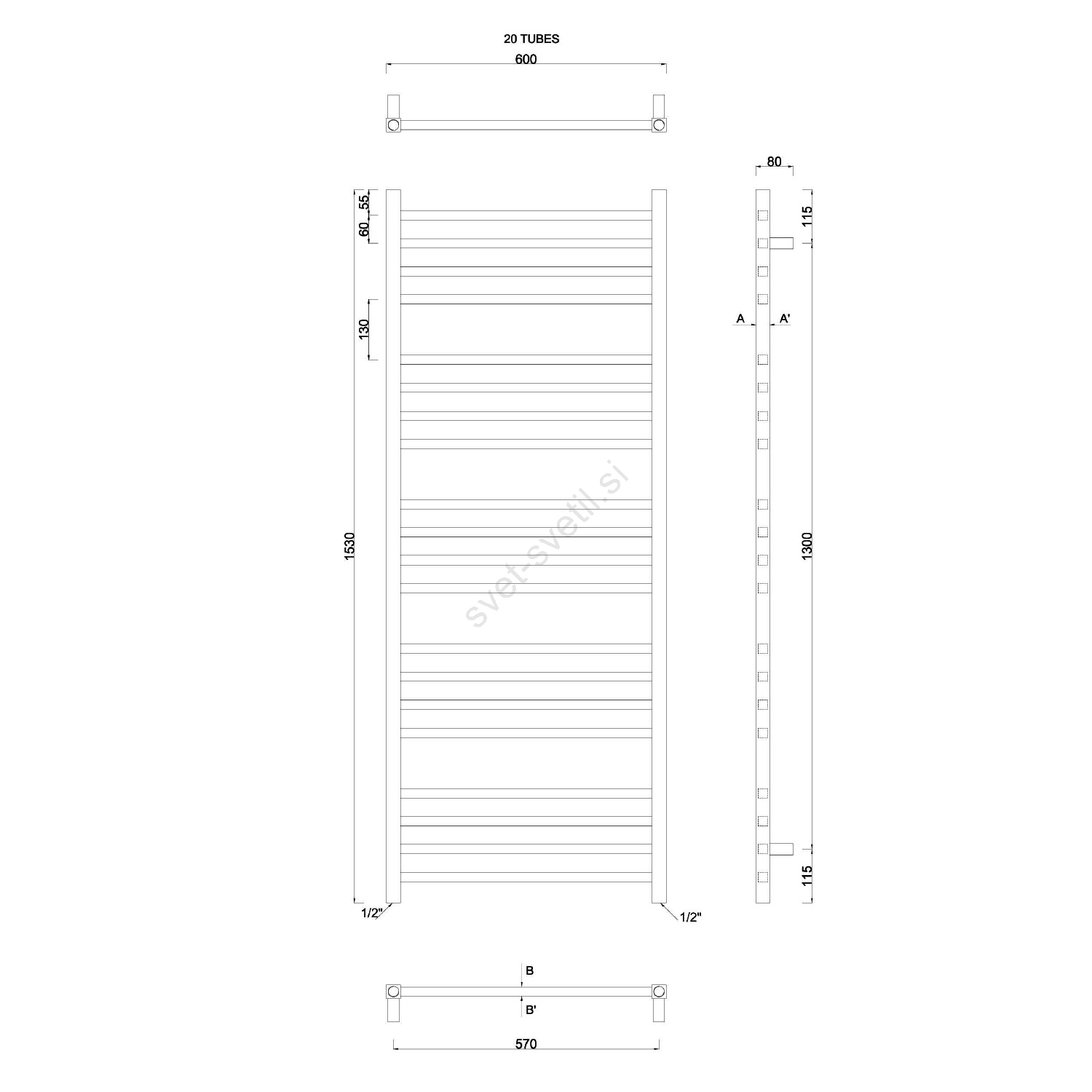 Sapho - Kopalniški radiator METRO 497W/230V 60x153 cm sijajni krom