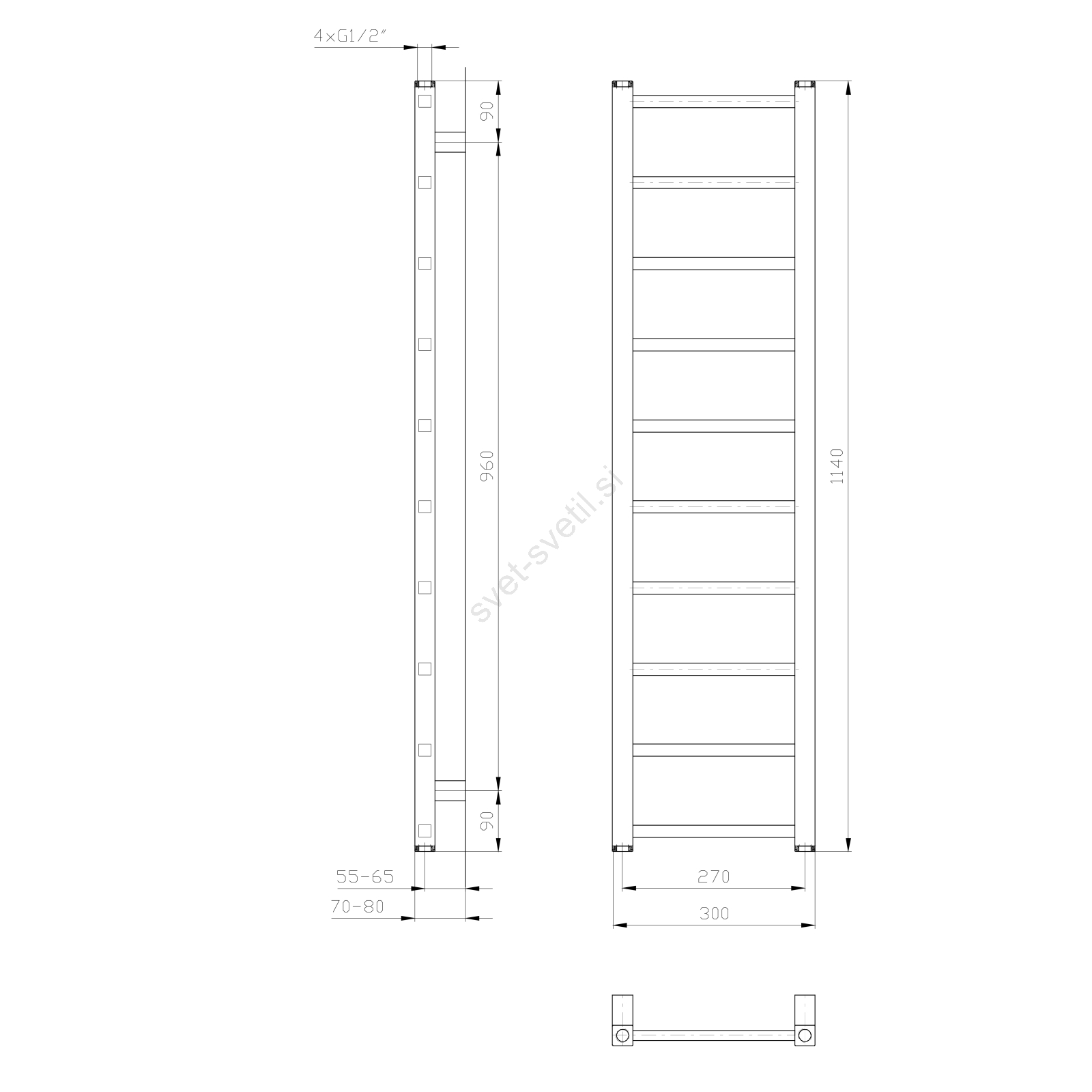 Sapho - Kopalniški radiator METRO LIGHT 211W 30x114 cm bel