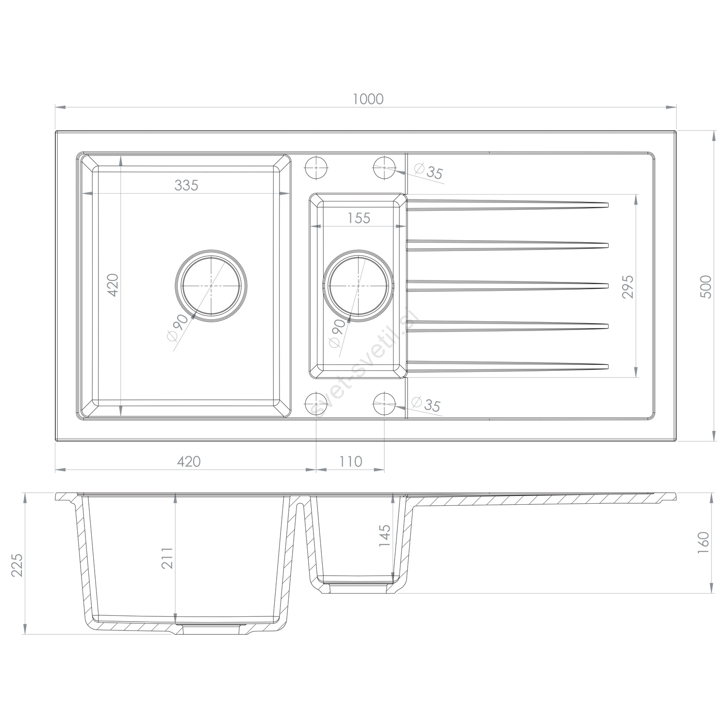 • Pomivalno korito je izdelano iz granita in ima ploščo za odcejanje.
