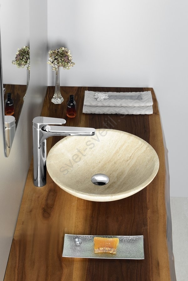 Sapho - Nadpultni umivalnik BLOK, premer 40 cm, bež/travertin