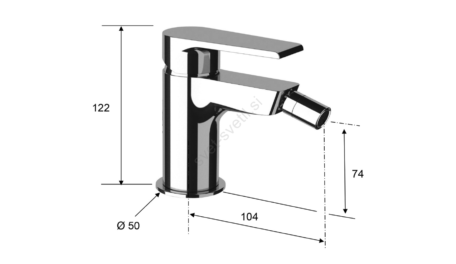 • Ta pipa za bide ima valjasto ohišje in pravokoten izliv.