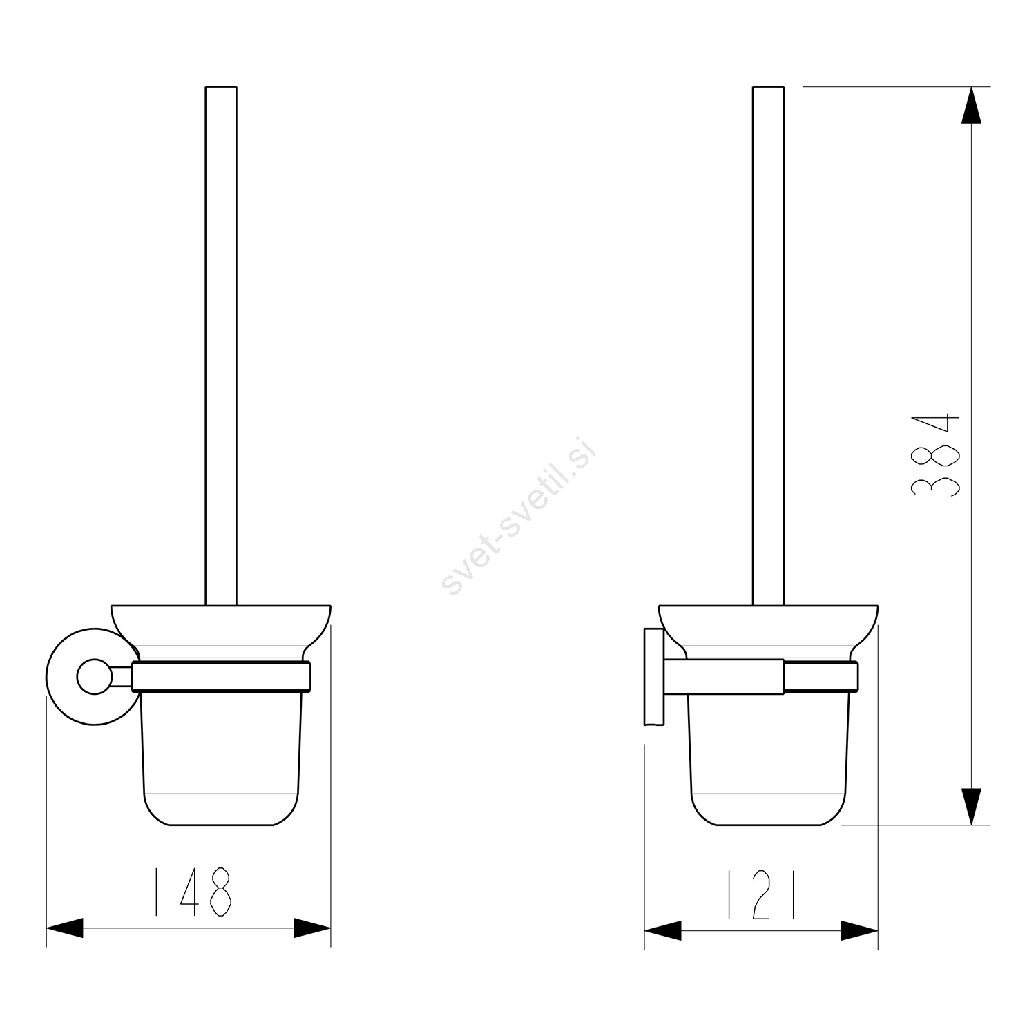 • Ta WC ščetka je stenska in izdelana iz mlečnega stekla ter kroma.