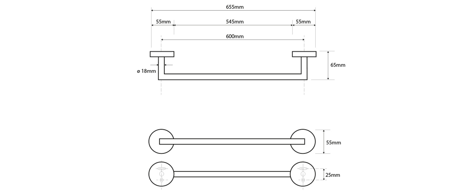 Sapho - Stenski obešalnik za brisače X-ROUND 6,5x65,5 cm sijajni krom