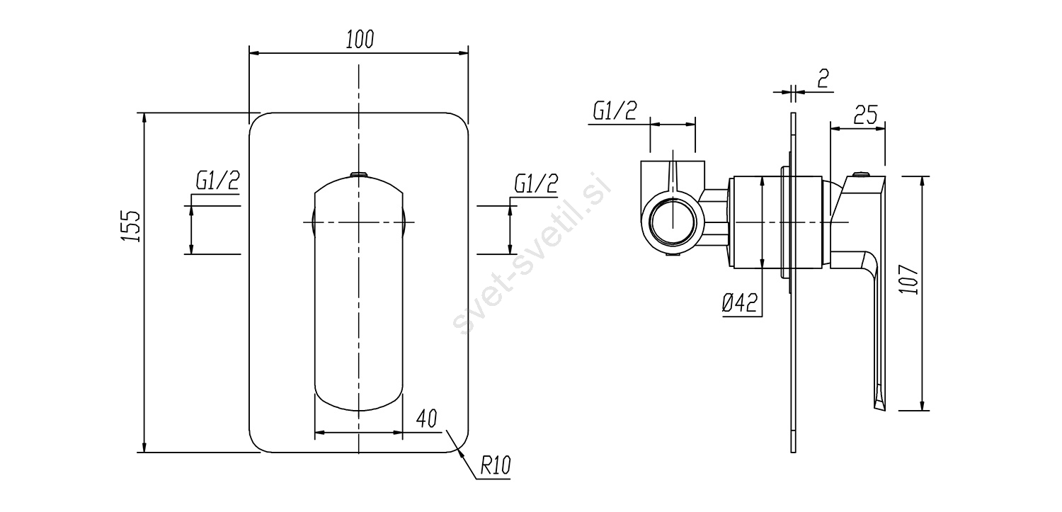 • Vgradna tušna baterija mixona ima vitko ohišje in sodoben dizajn.