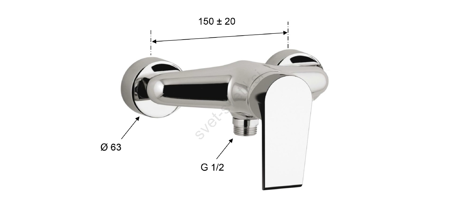 • Ta tušna armatura ima valjasto telo in kvadratno izlivno glavo.