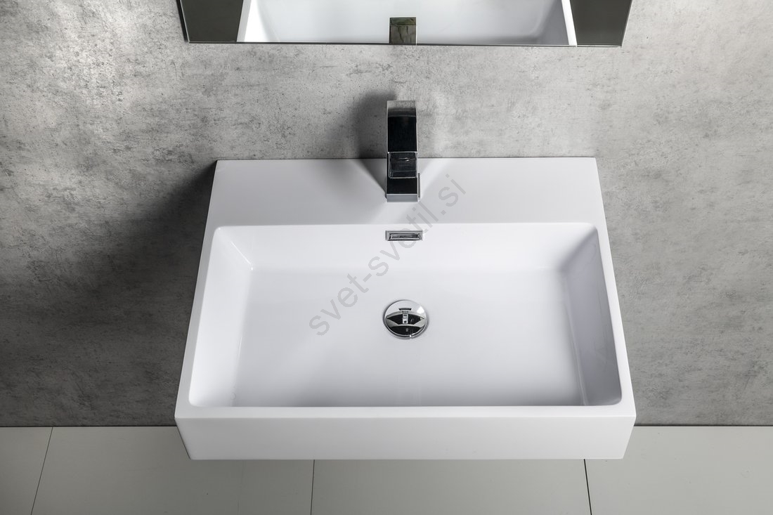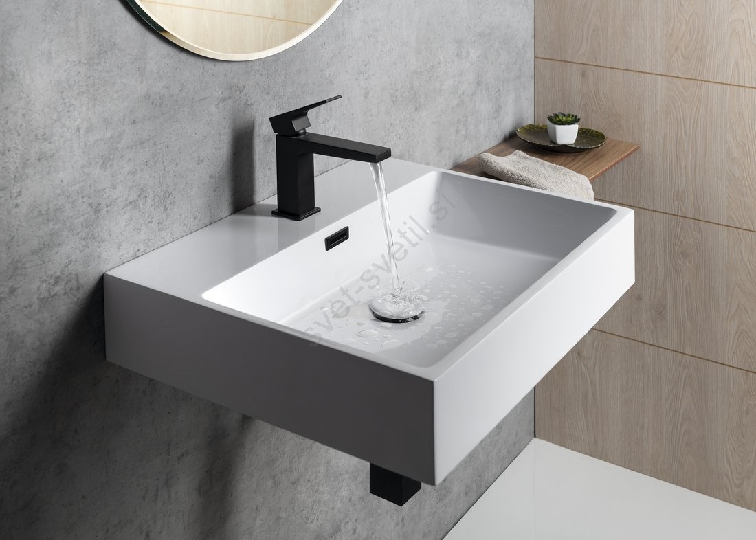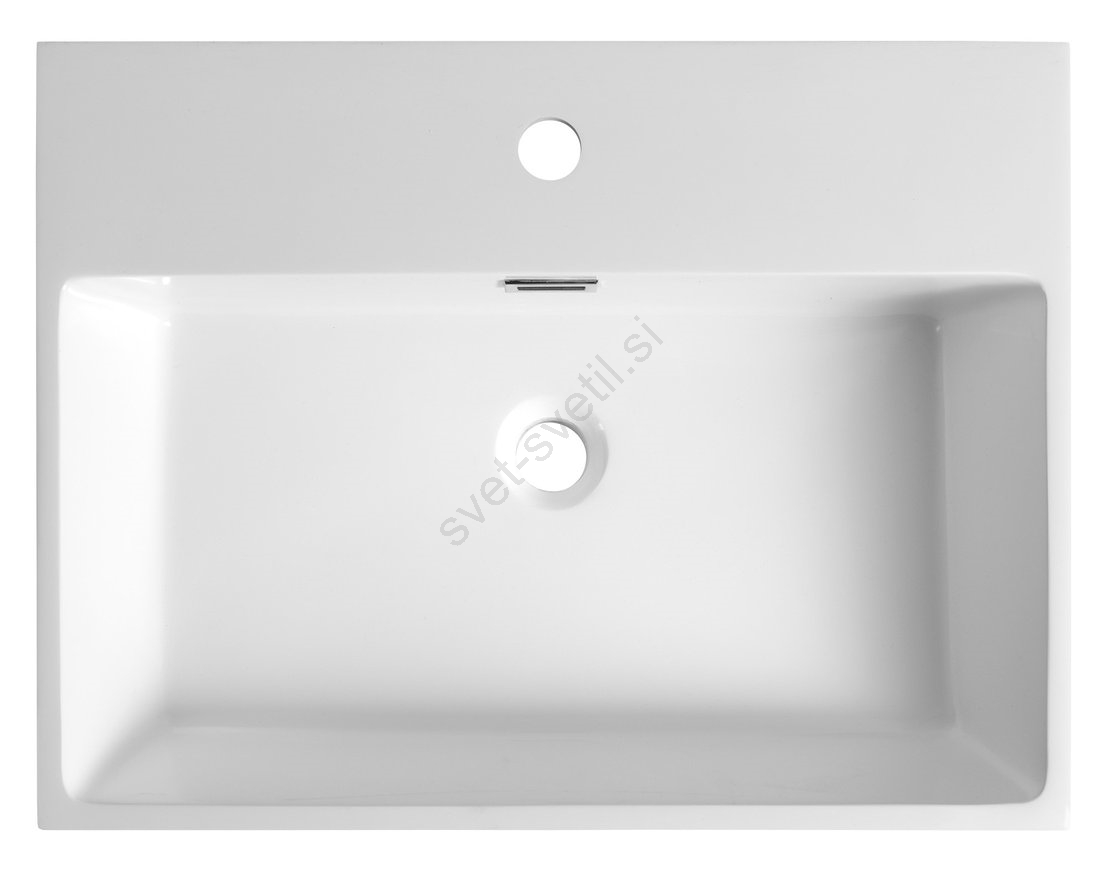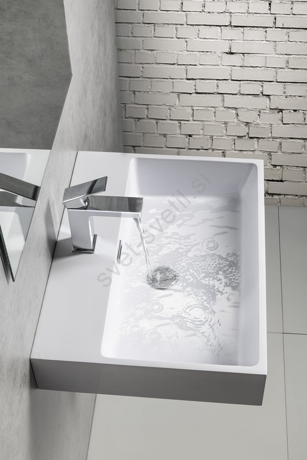• Namenjen je stenski montaži in ima eno odprtino za pipo.
