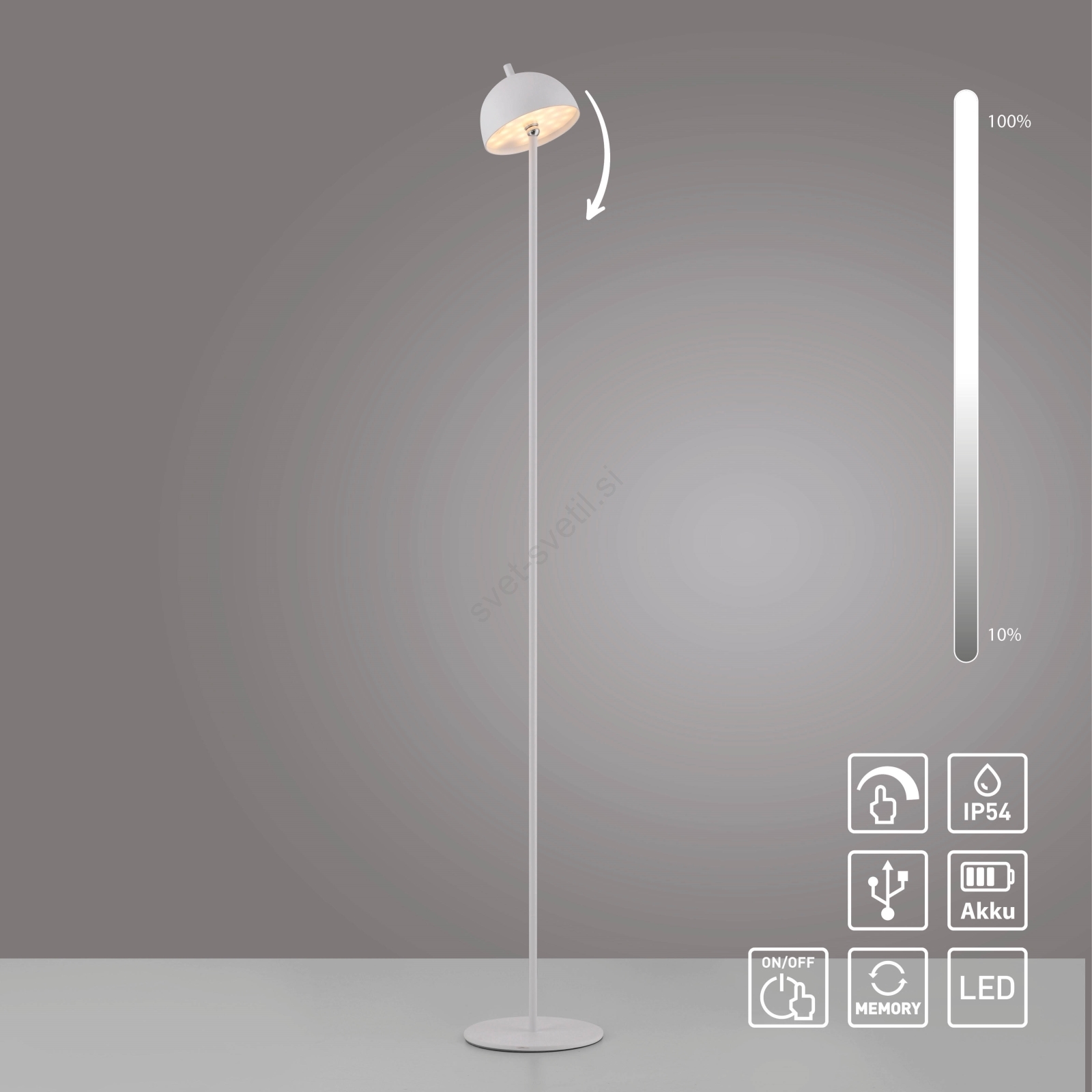 Schöner Wohnen 19245-16 - LED zatemnjevalna, na dotik upravljana polnilna zunanja stoječa svetilka BELLIS LED/2,5W/5V 2600 mAh IP54 bela
