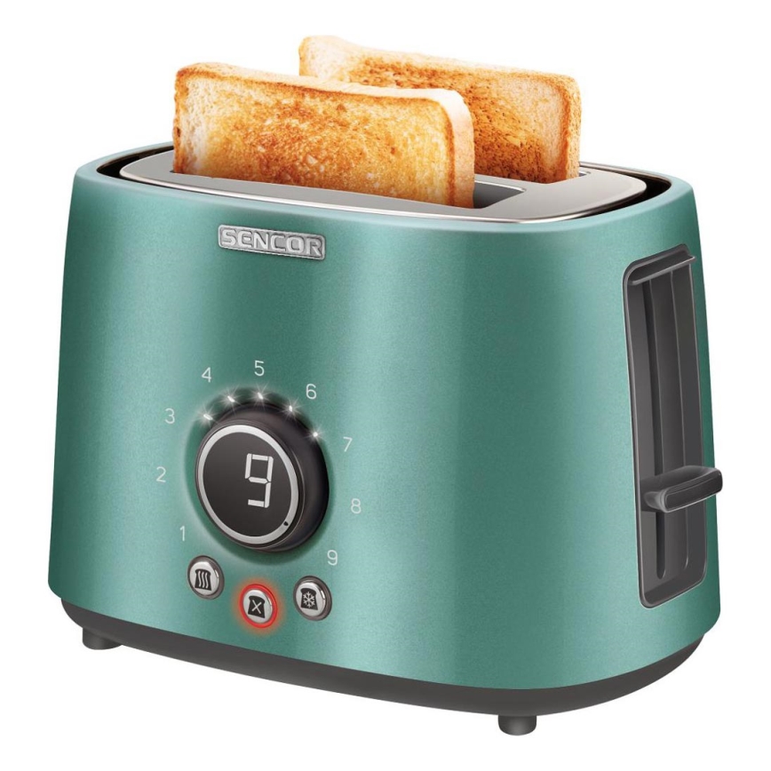 Sencor - Opekač kruha z dvema režama in rešetko za pogrevanje 1000W/230V mint zelene barve