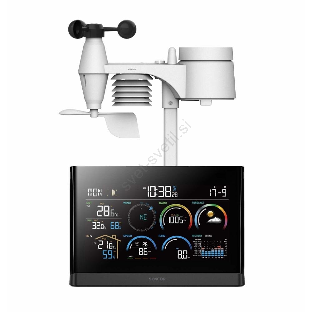 Sencor - Profesionalna vremenska postaja z barvnim LCD-zaslonom in alarmom 5V/3xAAA + 3xAA