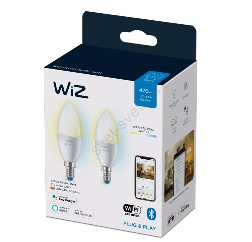 E14, Glede na vznožek, LED žarnice, LED žarnice E14, Pametna razsvetljava, Pametne žarnice, Svetila, WiZ, WiZ, Zatemnitvene žarnice, Znamke, Žarnice, Žarnice