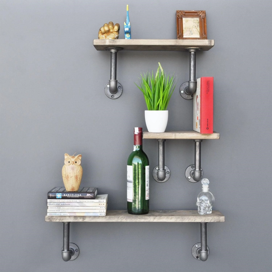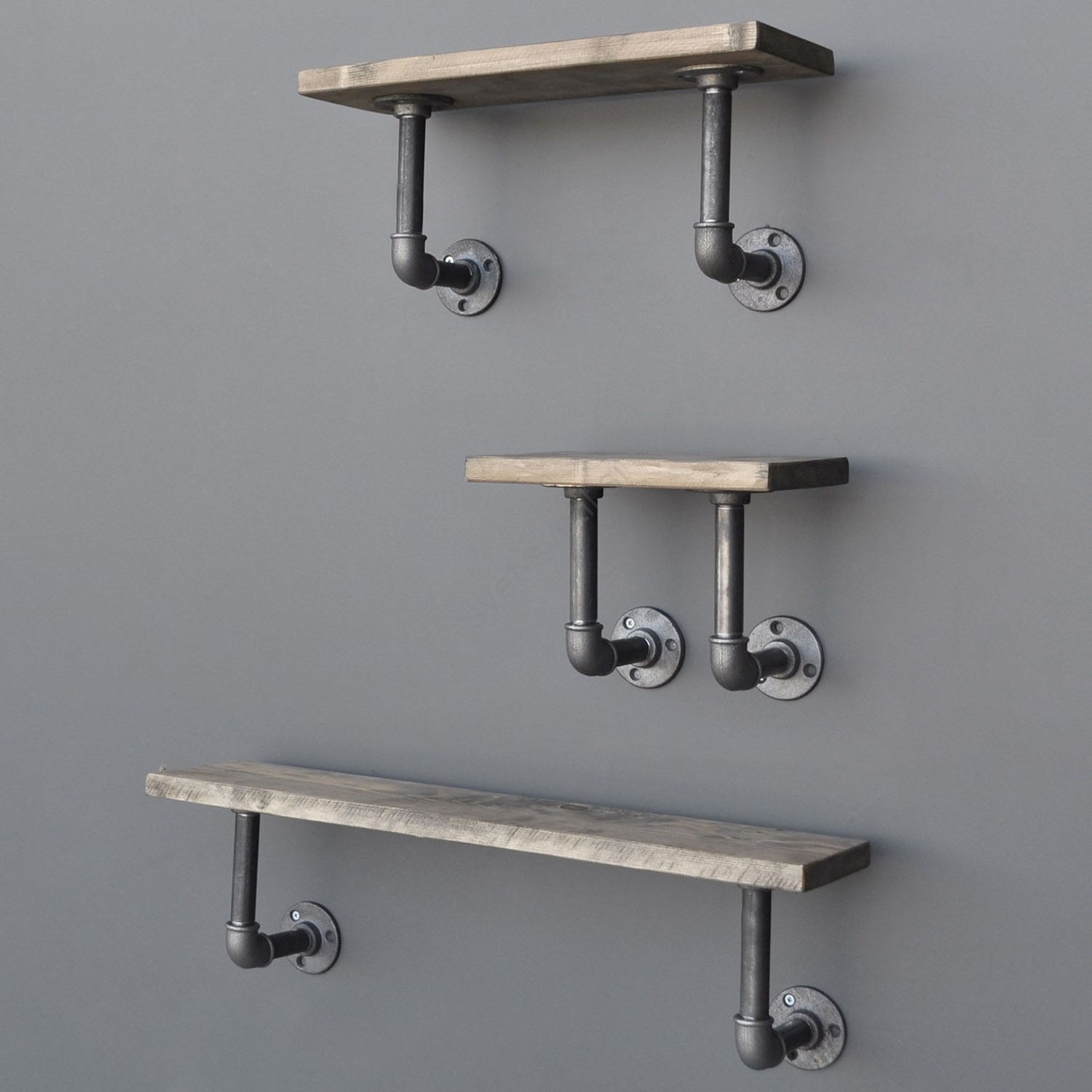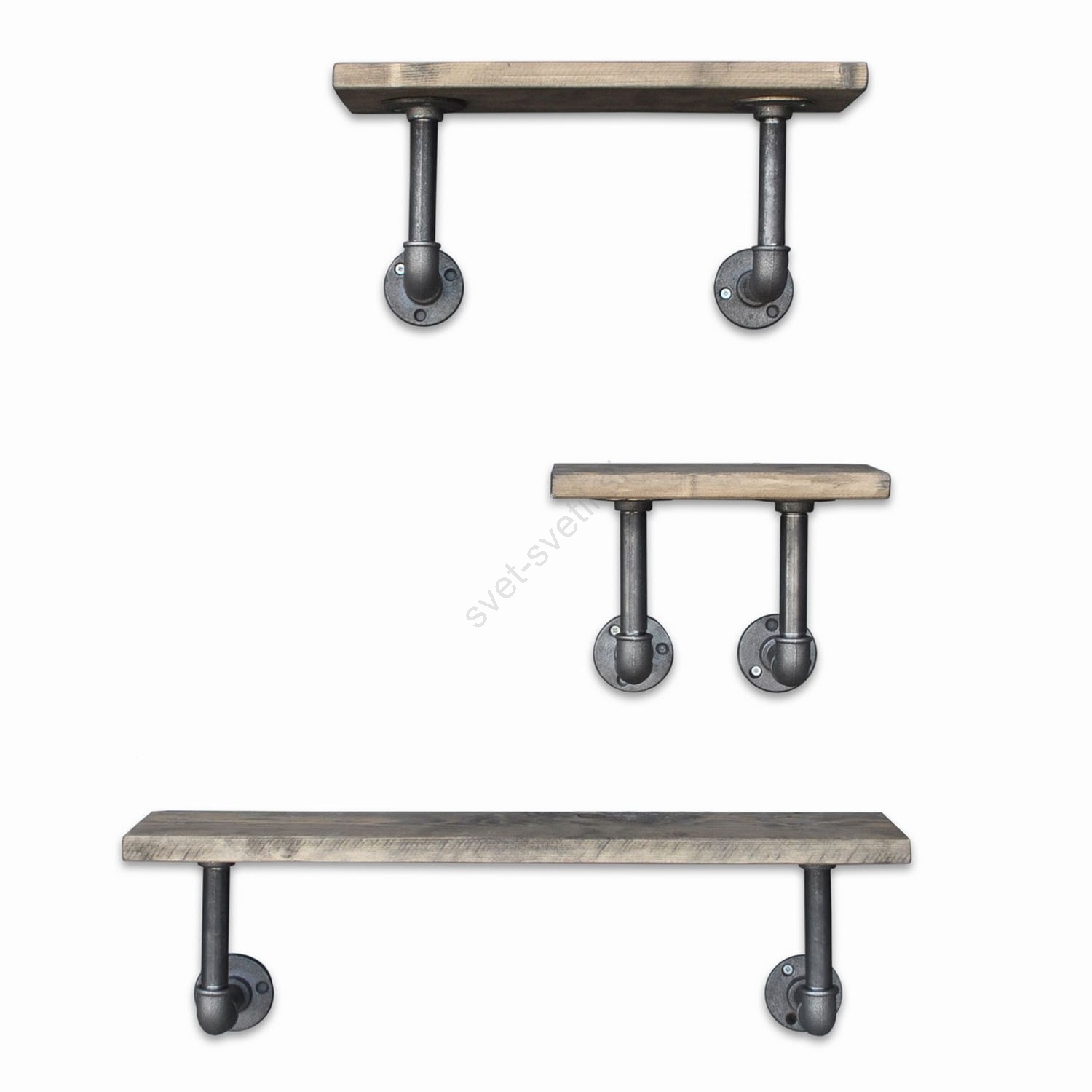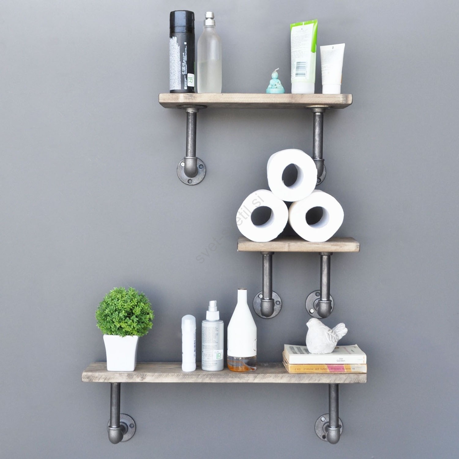• Komplet treh stenskih polic iz smrekovega lesa v industrijskem stilu.