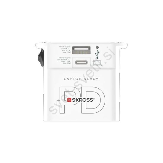 • Univerzalni adapter brez ozemljitve za 220 držav po svetu z vgrajeno USB PD polnilko, maks. 2,5 A.