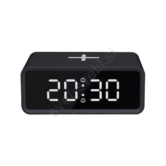 Digitalna ura z brezžičnim polnilcem Qi 230V/CR2032 črna