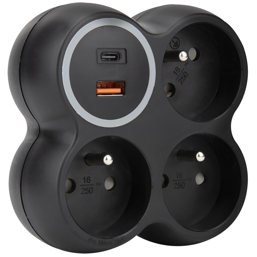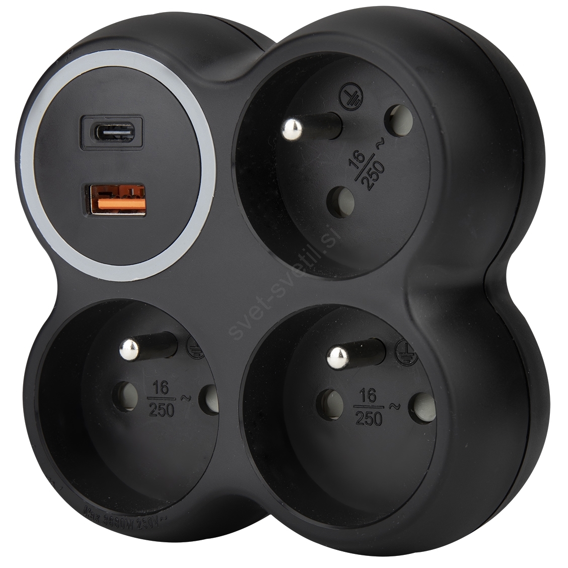 Razdelilna vtičnica 3x 15A USB A+C črna