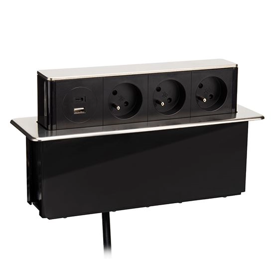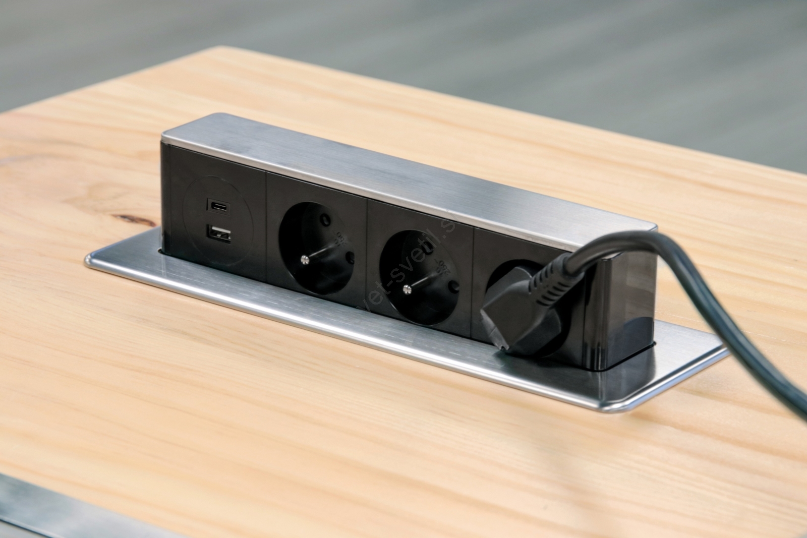 Stolp z vtičnicami za namizno ploščo 3x230V + USB-A + USB-C