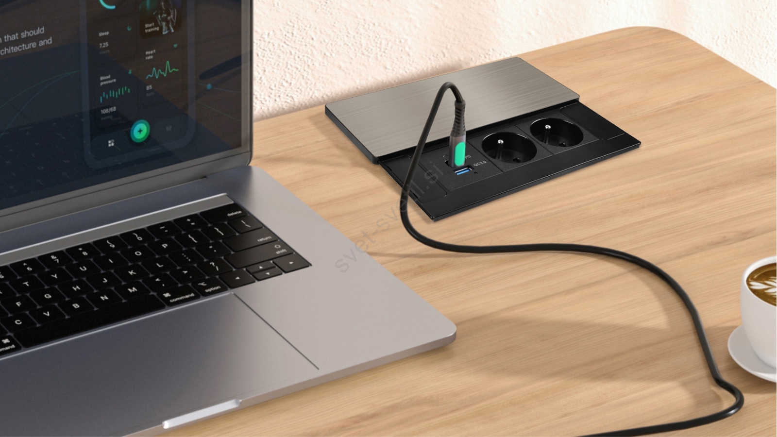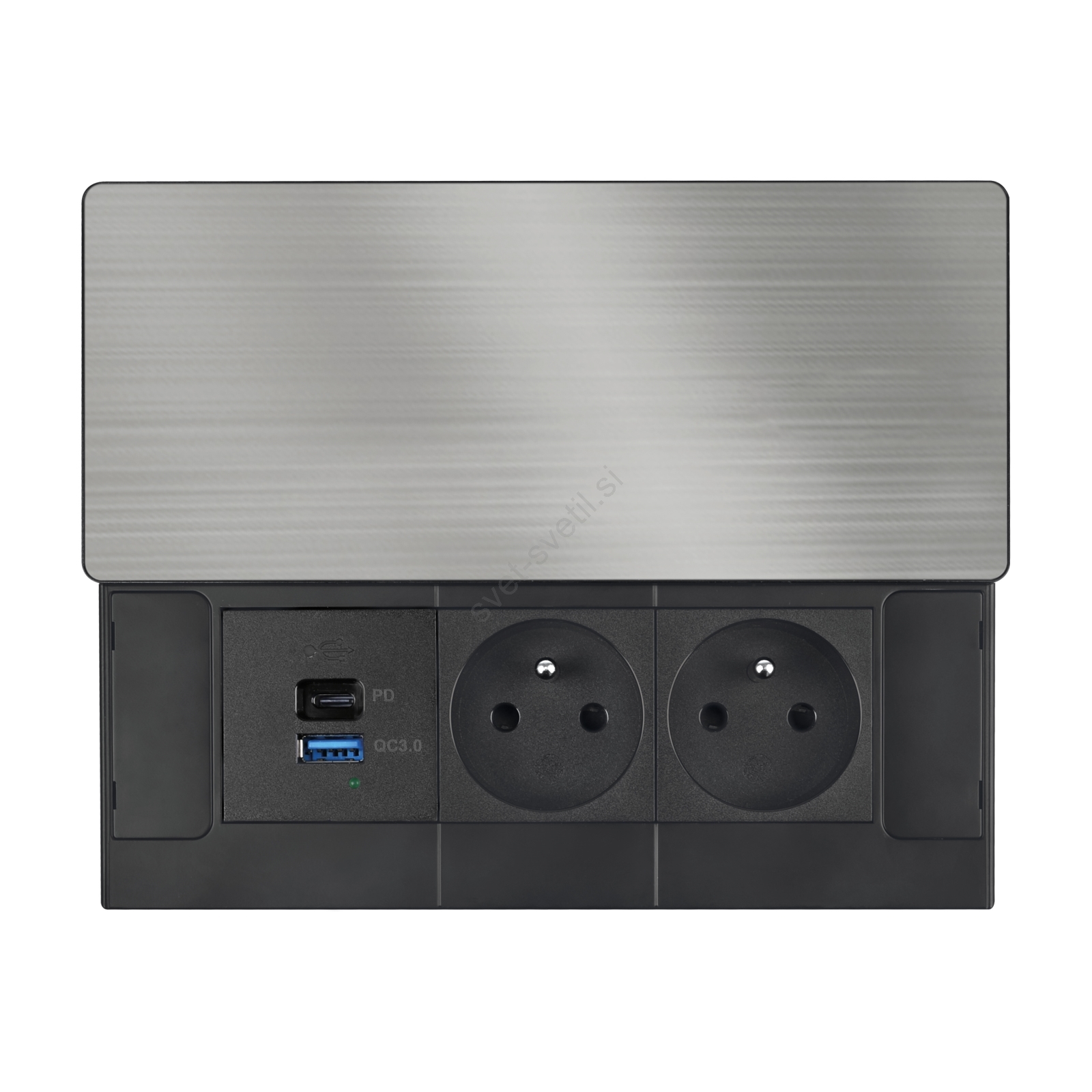 Vgradna vtičnica z brezžičnim polnjenjem 65 W, 2 vtičnici + USB-A + USB-C