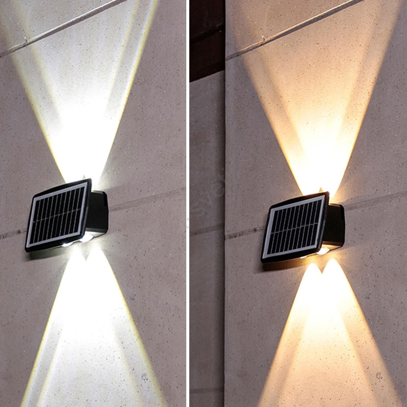 • LED zunanja stenska sončna svetilka z nastavljivim toplim in hladnim belim svetlom.