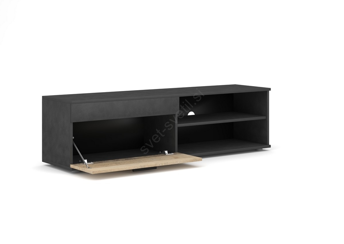 • Vključena je prostorna televizijska omarica z odprtimi policami za medijske naprave in zaprtimi predali za skrito shranjevanje.