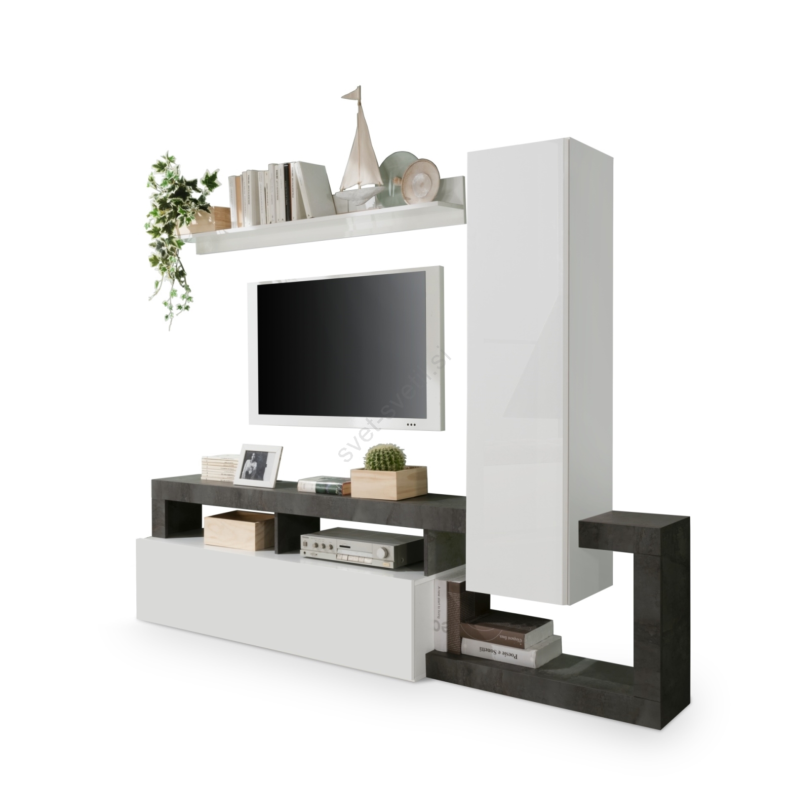• Dnevna stena LENOR, bela/siva (betonski dekor)