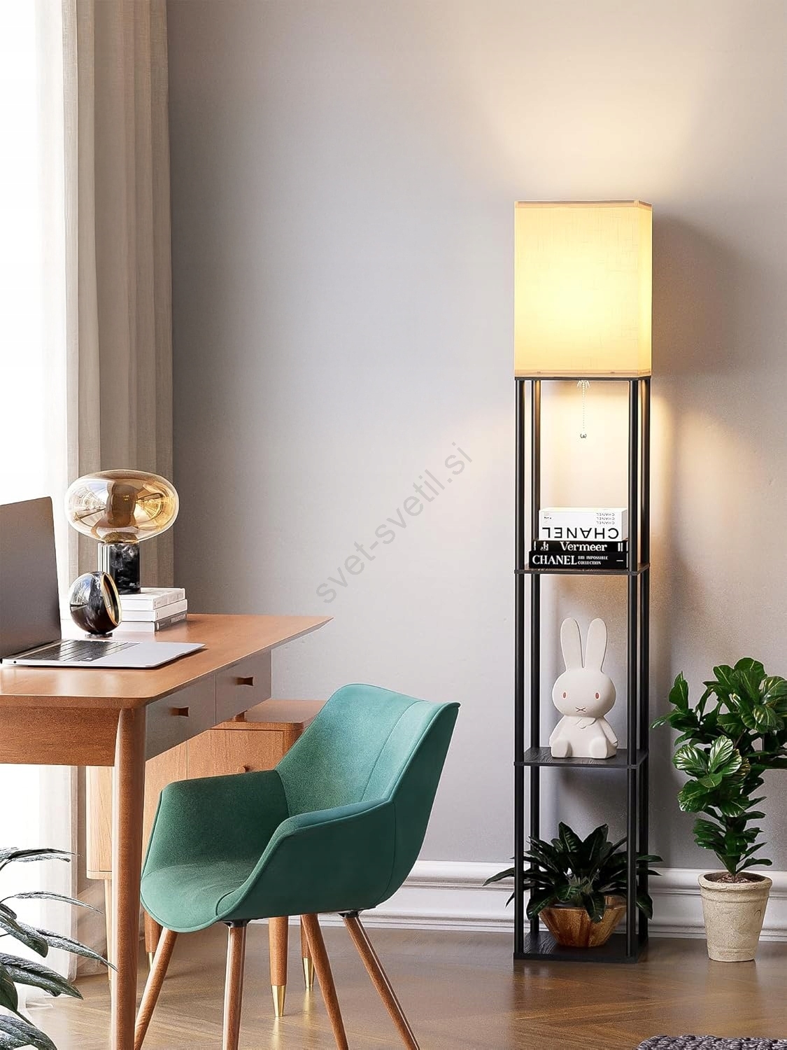 Stojna svetilka z policami 1xE27/40W/230V črna/bela
