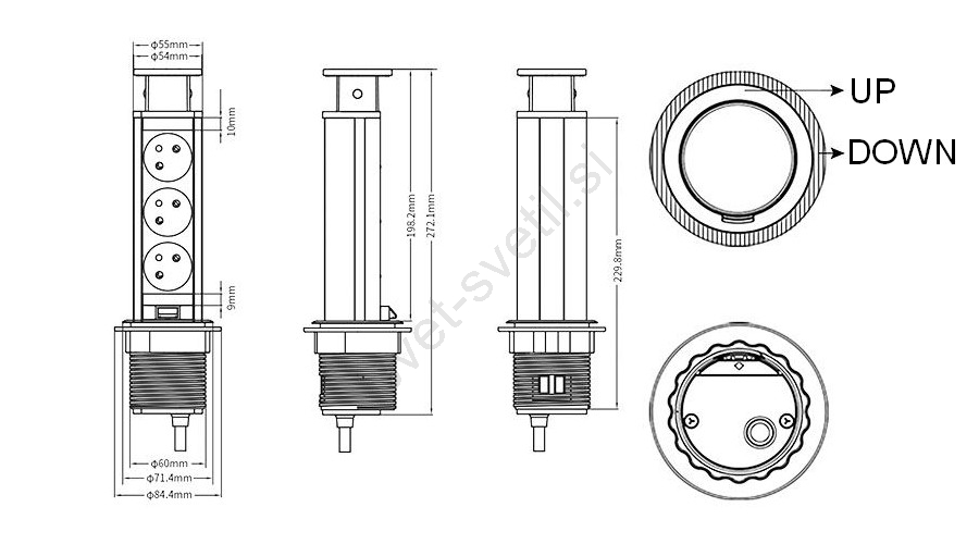 Stolp z vtičnicami za mizno ploščo, 3×230 V